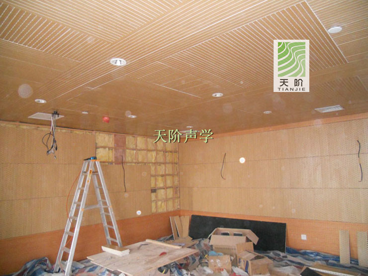 此項目為翻新工程使用了700平方的槽木吸音板,400平方的孔木吸引板,1100平方的隔音棉