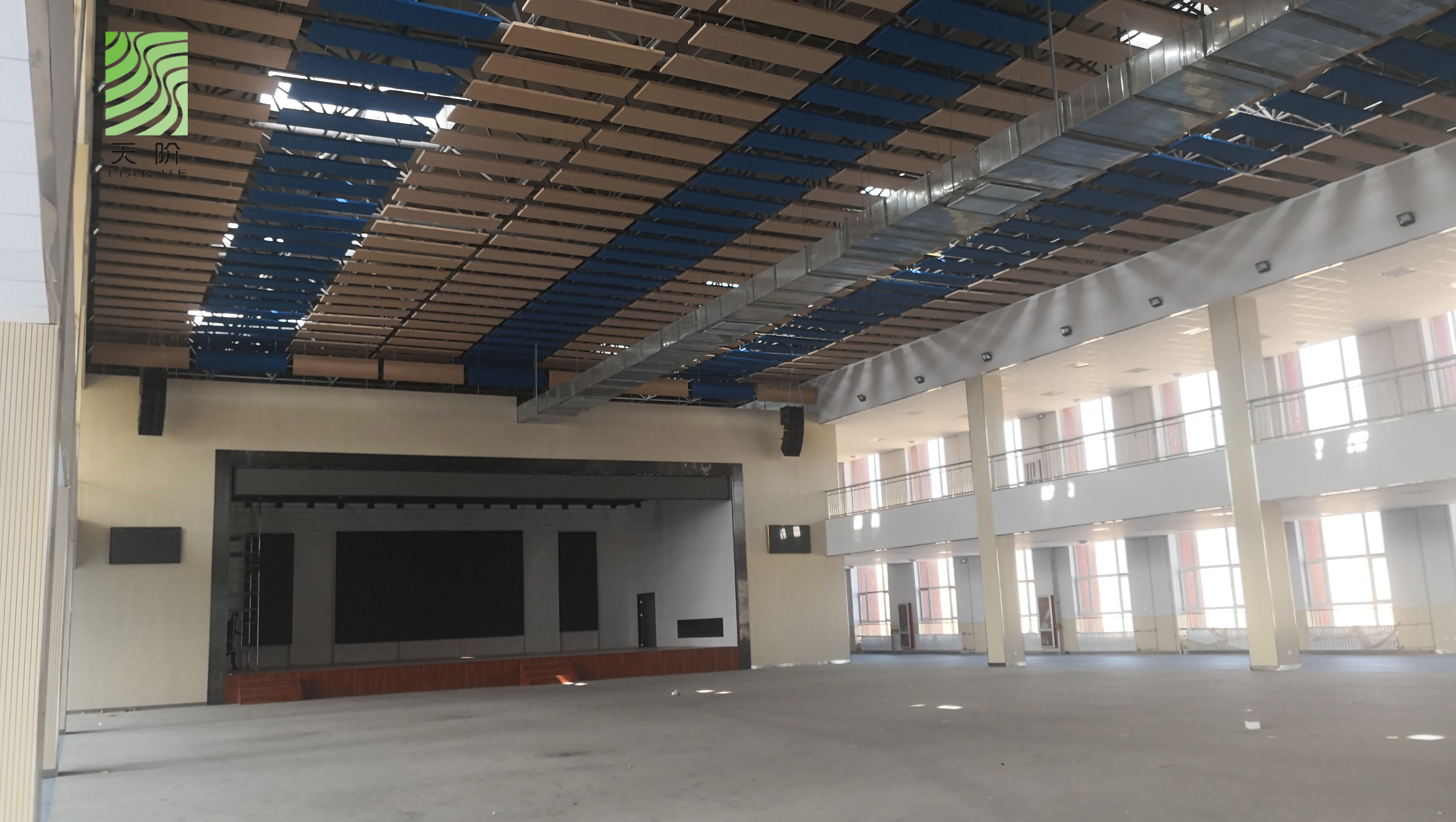 ⒈在棚頂安裝大面積的平面吸聲天花板。這種方法大量用于劇場、禮堂和屋頂為平面形的體育館,效果很好。但如用于弧形拱頂或采用透光屋頂的體育館,這種方式會完全破壞了原來的風格和采光功能,不可取。