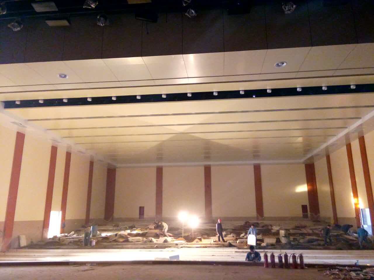 山東濱州濱化報(bào)告廳墻面吸音板,木質(zhì)槽木吸音板28/4紅櫻桃阻燃吸音板500平方,E32/8孔木吸音板600平方,現(xiàn)已經(jīng)完工,具體吸音板效果如下