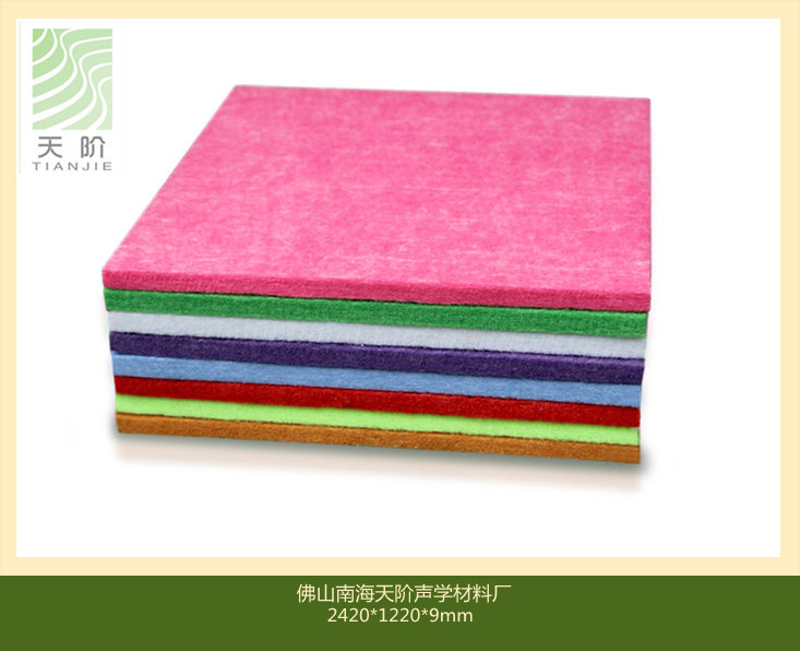 (1)聚酯纖維吸音板密度高。首選聚酯纖維吸音板的密度必須要高的,也就是我們說的板子要硬才行,這個相對于市面上一些便宜的板子稍微貴5元一平米,一份價格一份貨,這種材質的聚酯板,不僅顏色純正,容易倒邊,不起毛球,非常有質感,高檔很多。