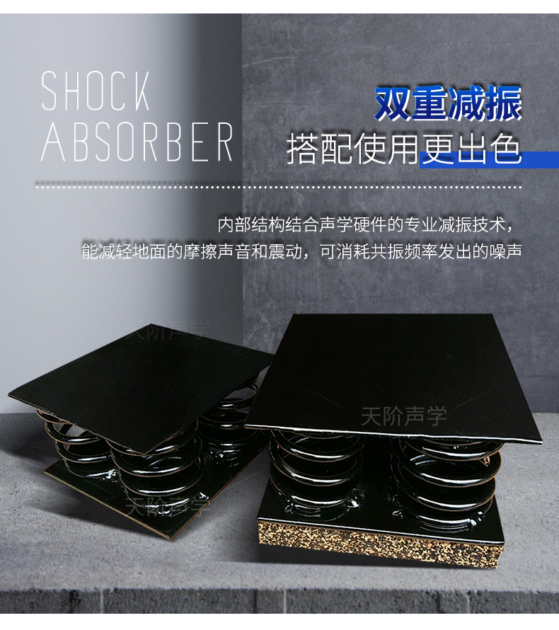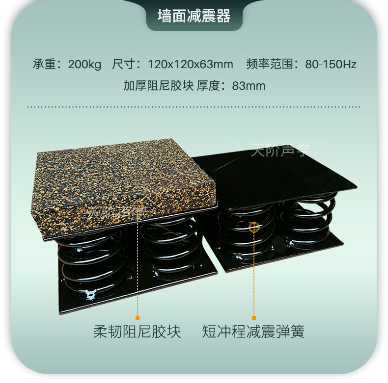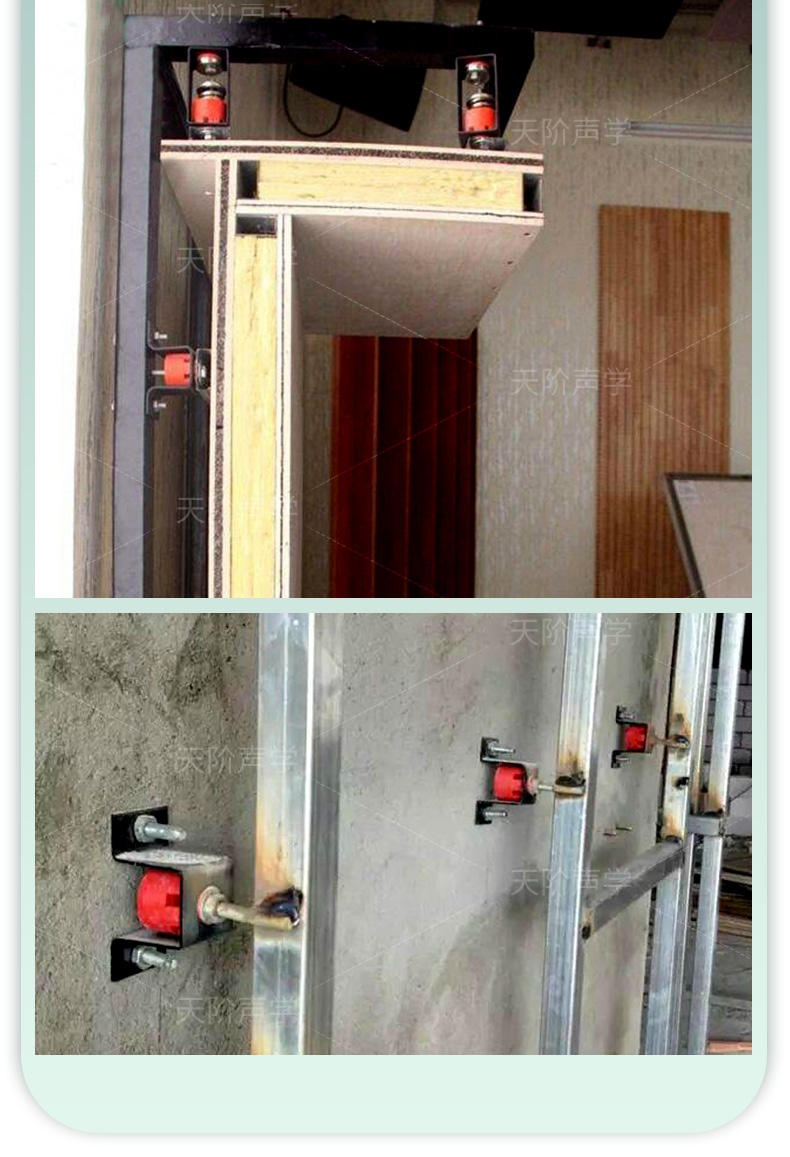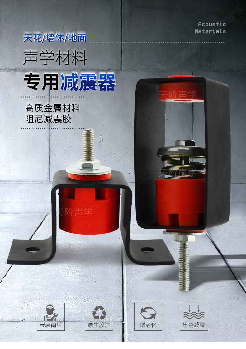 天花墻體隔音減震器是用于天花墻體隔音的必要構(gòu)件。它特有的阻尼橡膠塊可以切斷聲橋的傳播,尤其對KTV、酒吧里有低音炮的地方,這是重要的隔音系統(tǒng)配件,不然,無論多少隔材料都無法將聲音阻隔于包廂房內(nèi)。