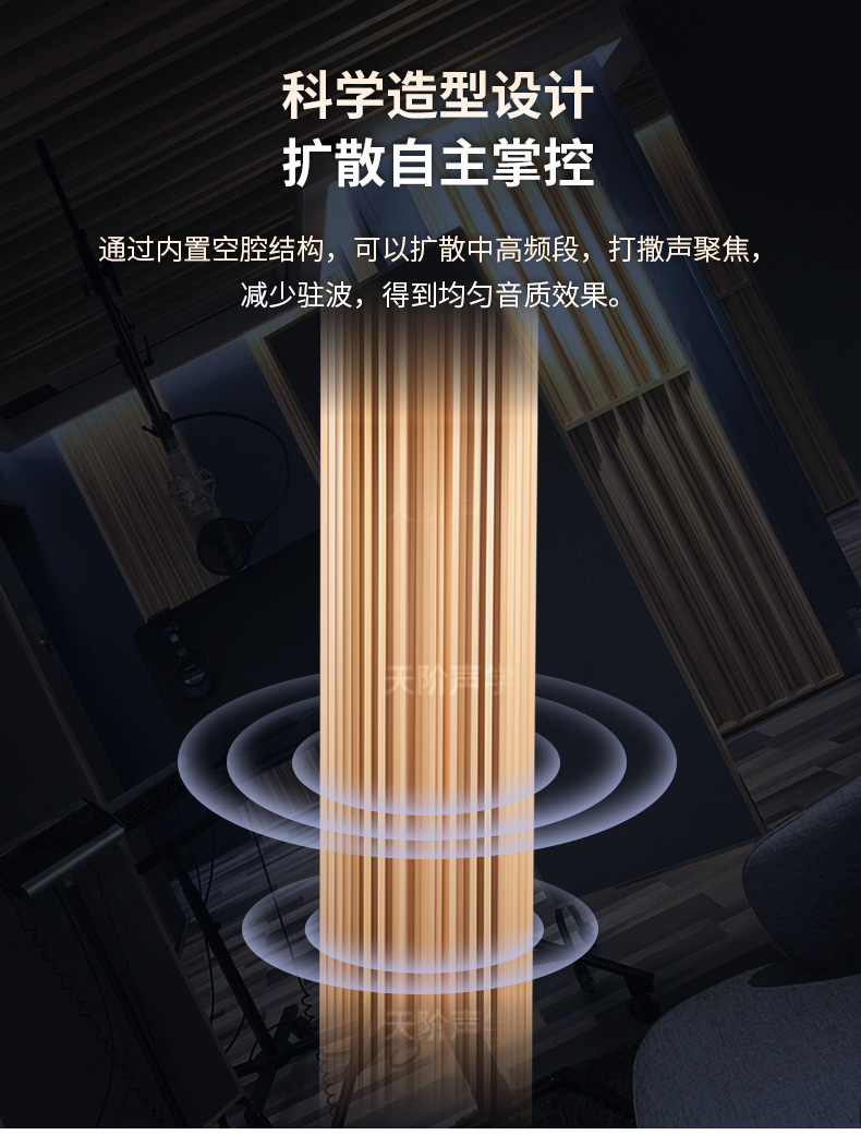 4.除了具有平面吸音板的所有功能以外,還能通過它的立體表面對聲波進行不同角度的傳導,消除音波在擴散過程中的盲區,改善音質,消薄重音,削弱高音,對低音進行補償。