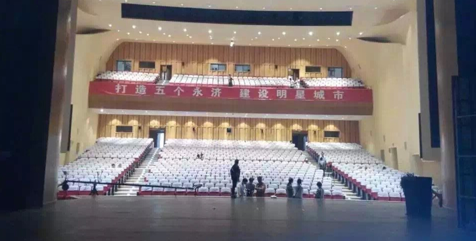 佛山天階建筑材料有限公司有幸成為山西永濟大劇院聲學產品供應商,該劇場作為開放式劇院,劇院采用了佛山天階28/4三層復合A2級防火槽孔吸音板1600┫,天花吊頂部門采用了天階超細無機纖維噴涂580┫,48KG/50mm的玻璃纖維吸音棉2300平方米,48KG/25mm的玻璃纖維吸音棉800平方米,80KG/50mm巖棉1200平方米。該劇場現在裝修完畢,已經投入使用。我司提供的聲學產品一度受到甲方以及施工方的認可。