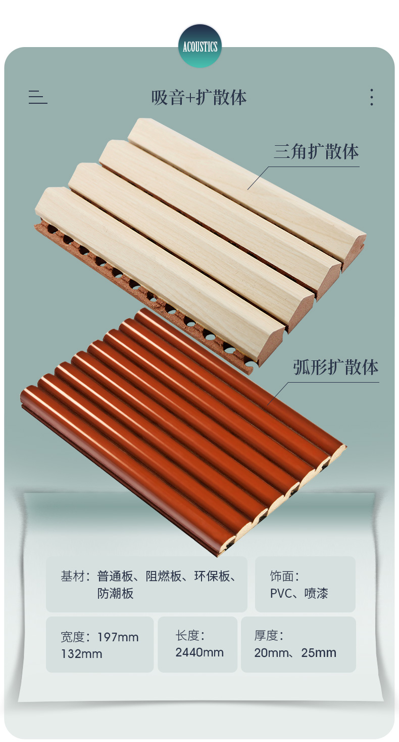 您現(xiàn)在的位置首頁(yè) ? 槽木木質(zhì)吸音板 - 軟包 - 防火吸音板 - 聲學(xué)產(chǎn)品 ? 擴(kuò)散體木飾面三角擴(kuò)散體