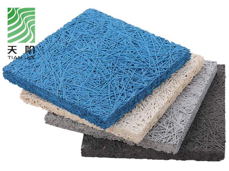 木絲吸音板的表面紋理表現出高雅質感與獨特品味,可充分演繹設計師的創意和理念。該產品結合了木材與水泥的優點:如木材般質輕,如水泥般堅固,具有吸音、抗沖擊等多種功能,可廣泛應用于體育場館、劇場、影院、會議室、教堂、工廠、學校、圖書館、游泳館等處。