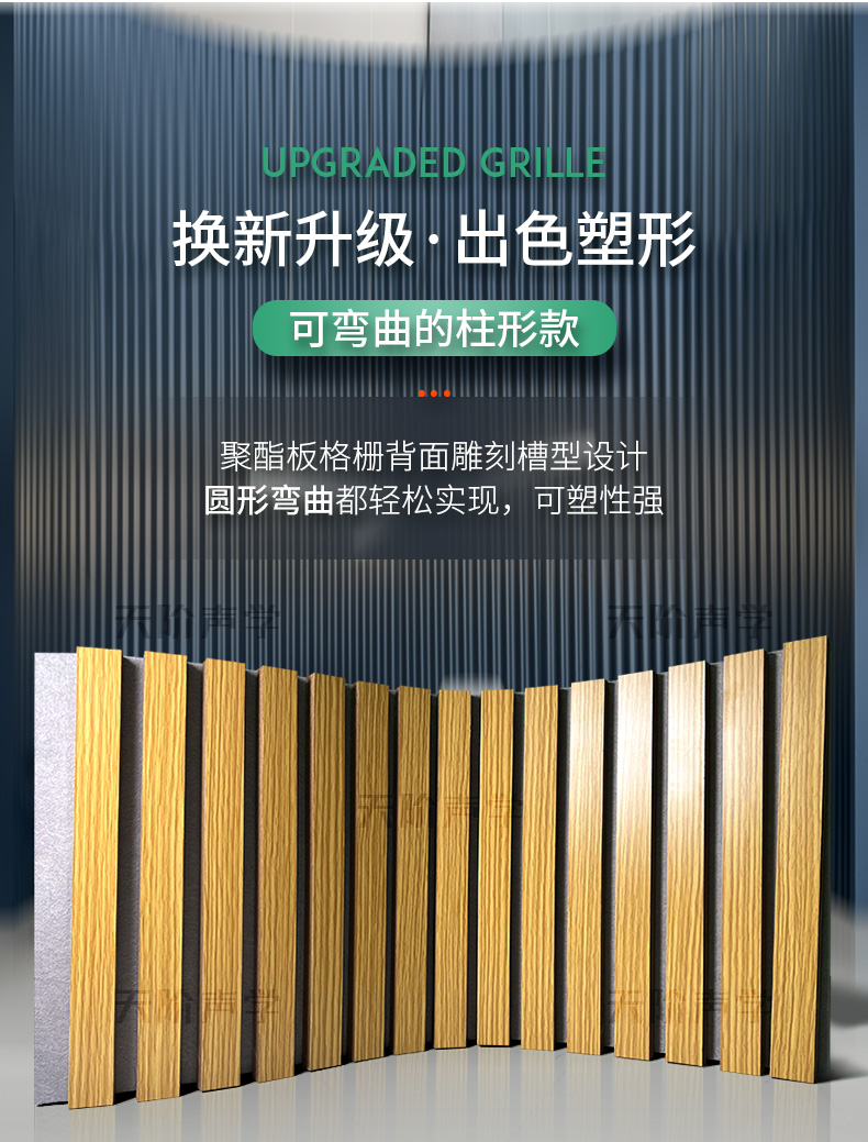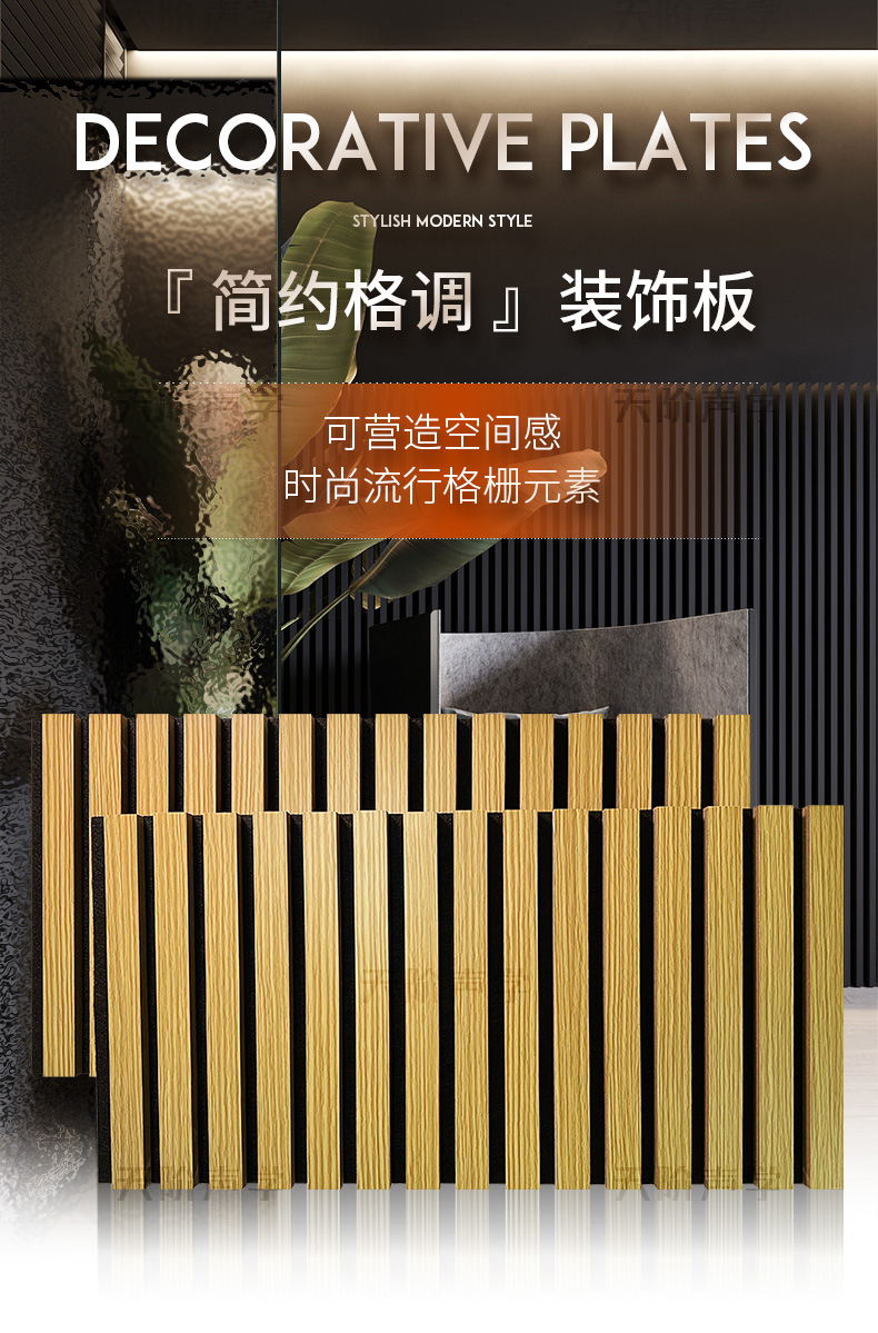 您現在的位置首頁 ? 槽木木質吸音板 - 軟包 - 防火吸音板 - 聲學產品 ? 格柵板背景墻聚酯板格柵板